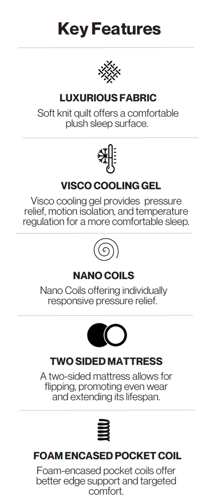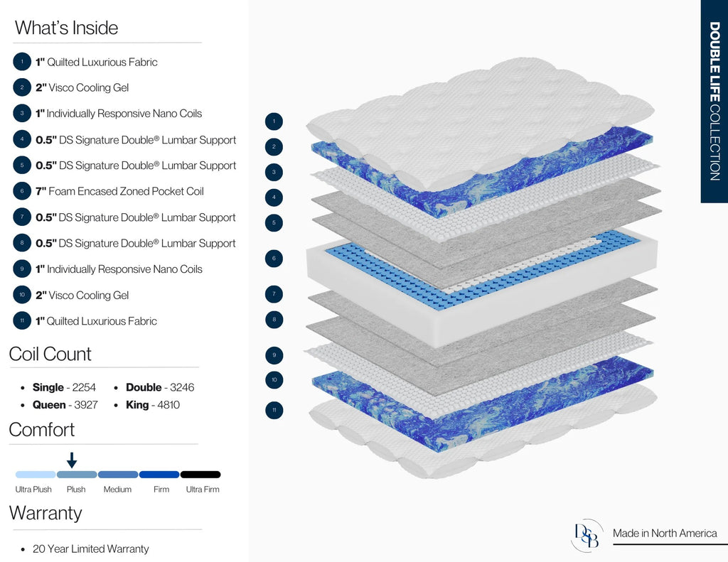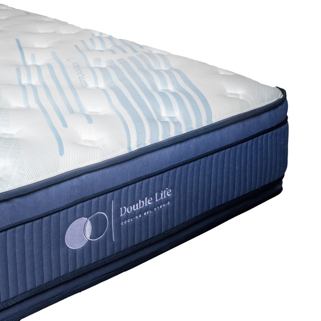 The Double Life Gel Euro Top is a 15" two-sided mattress designed for comfort, longevity, and temperature control. Featuring a plush Euro top with gel-infused memory foam on both sides, it offers cool, pressure-relieving support that lasts. Flip it regularly to maintain a fresh, like-new feel for years.