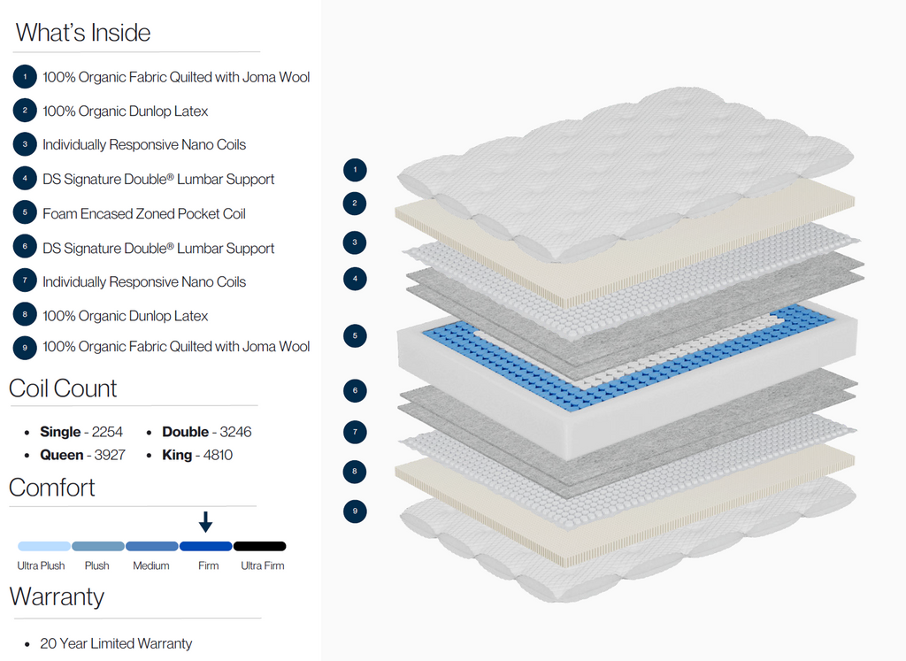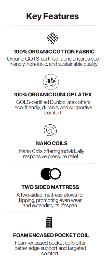 The Double Life Two-Sided Latex Tight Top mattress offers firm, balanced support with a durable, flippable design. Crafted with natural latex on both sleeping surfaces, it delivers resilient comfort, motion isolation, and long-term performance—perfect for those who prefer a firmer, more supportive feel.